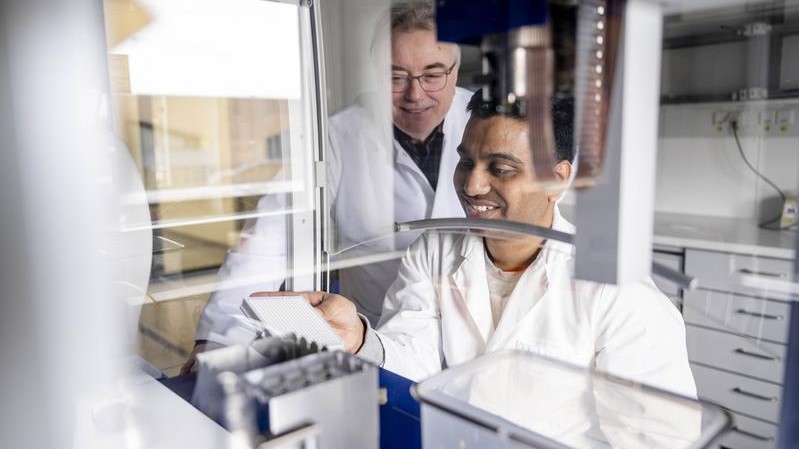Ralf Erdmann (links) und Chethan Krishna widmen sich der Erforschung von Trypanosomen.